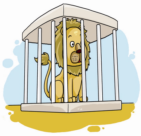 The lion is in a cage, so people can be safe.
